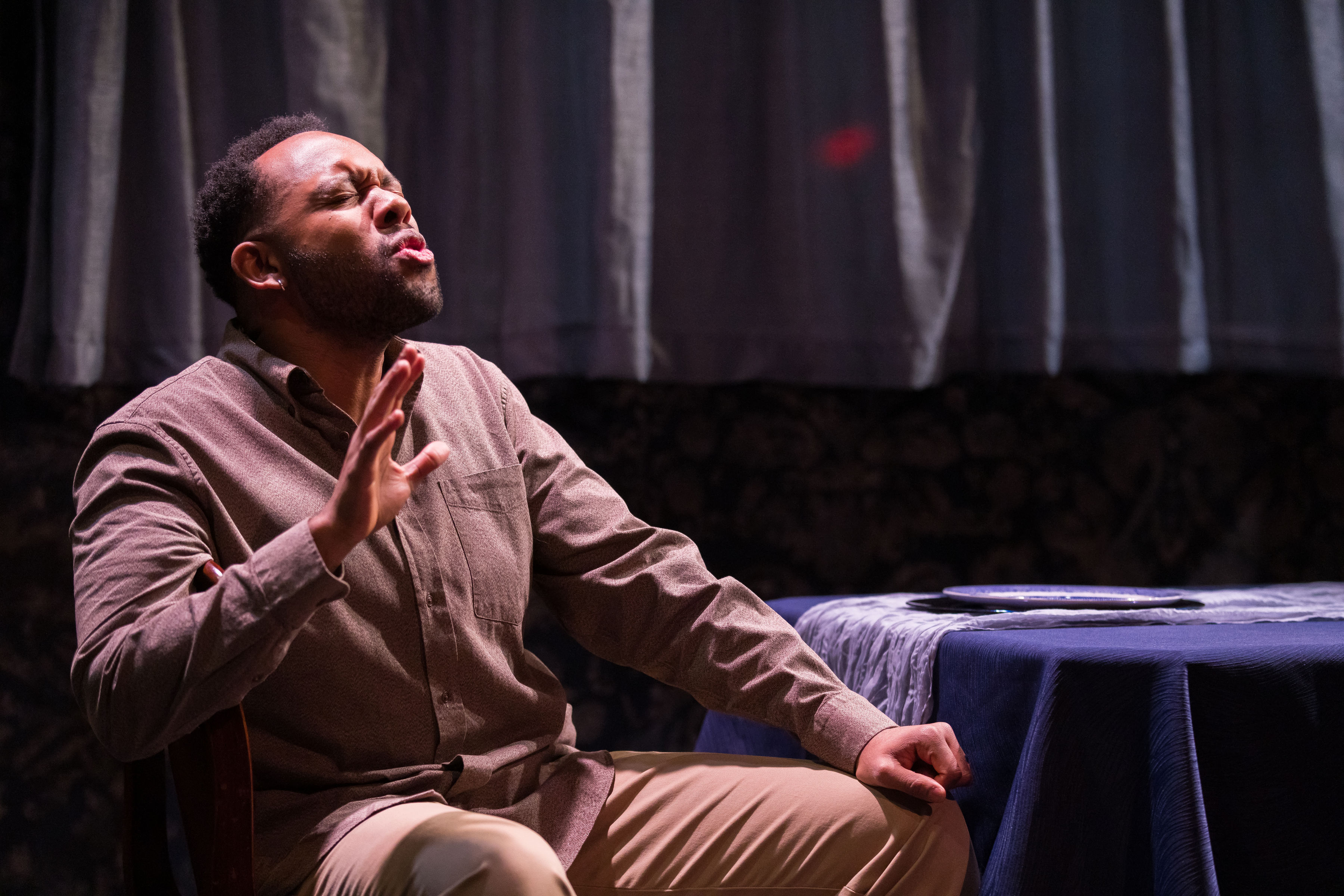 Written by: Harrison David Rivers. Scenic design: dots. Lighting design: Christina Tang. Sound design: Sadah Espii Proctor. Costumes: Devario Simmons. Produced by Geva Theatre. Photo credit: Ron Heerkens, Jr. (Goat Factory Media Entertainment).